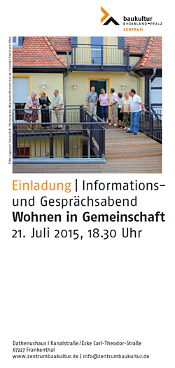 Wohnen in Gemeinschaft - Unter diesem Motto hatte das Zentrum Baukultur gemeinsam mit der ISB am 21. Juli 2015 zu einem Info- und Gesprächsabend nach Frankenthal eingeladen.
