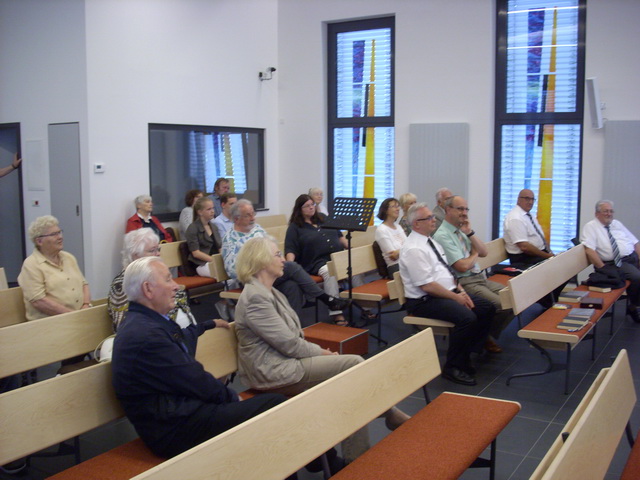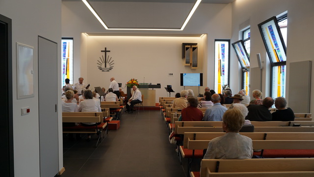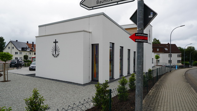 Entstanden ist ein zeitgemäßes modernes Kirchengebäude. Herzstück ist der ca. 100 Leute fassende Kirchensaal. Das Raumprogramm wird ergänzt durch zwei zusammenschaltbare Unterrichtsräume, eine Sakristei, Sanitäre Anlagen inkl. rollstuhlgerechtem WC, einem einladenden Foyer mit Garderobenbereich sowie einem Technikraum.